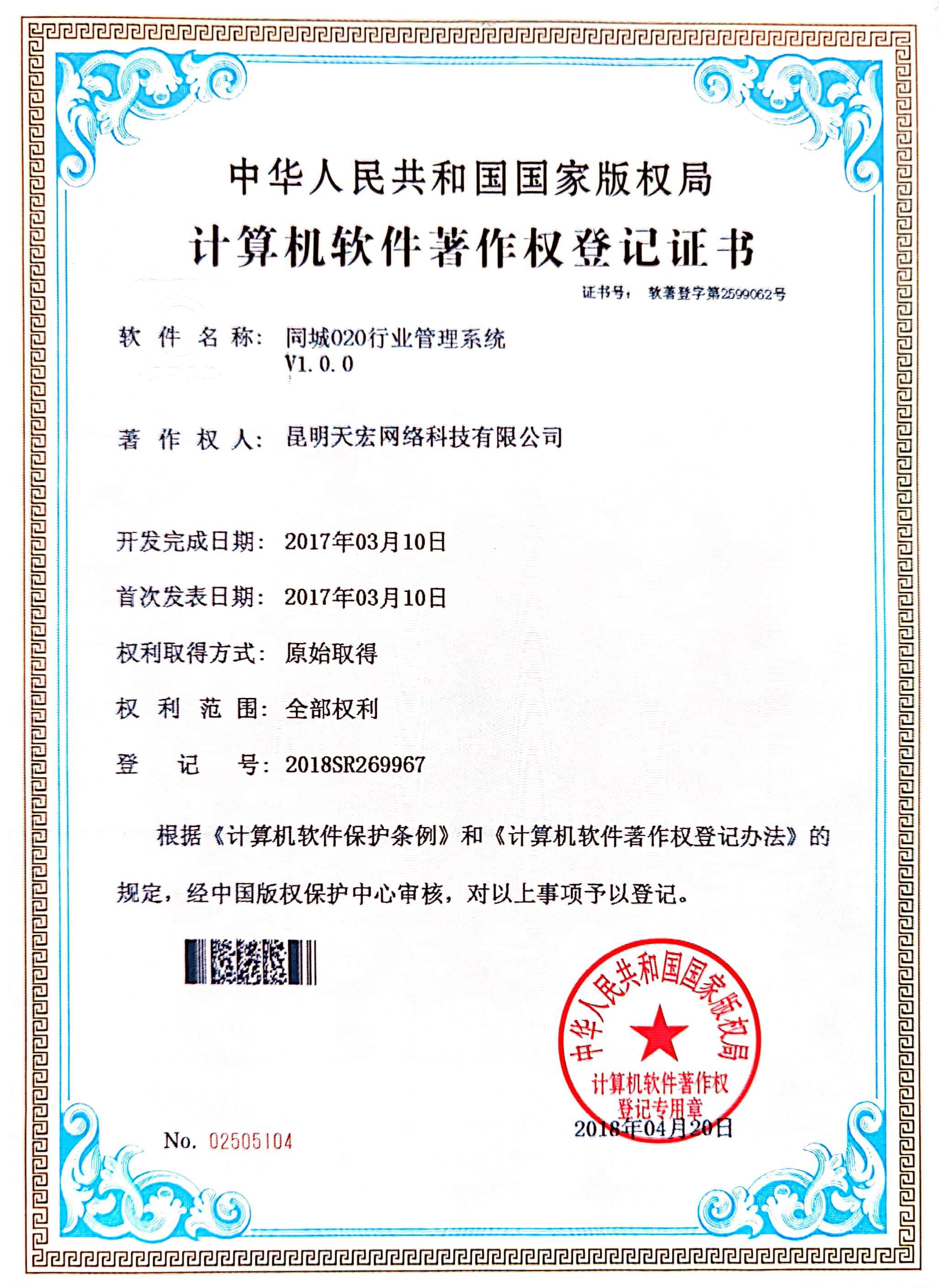 天宏網絡通過不斷的研發(fā)創(chuàng)新,現擁有50多項計算機軟著證書,包括多商家點餐系統、門店收銀管理系統、通用OA協同辦公管理系統、智慧商圈運營管理平臺、天宏健康智慧+系統、同城O2O管理系統等。